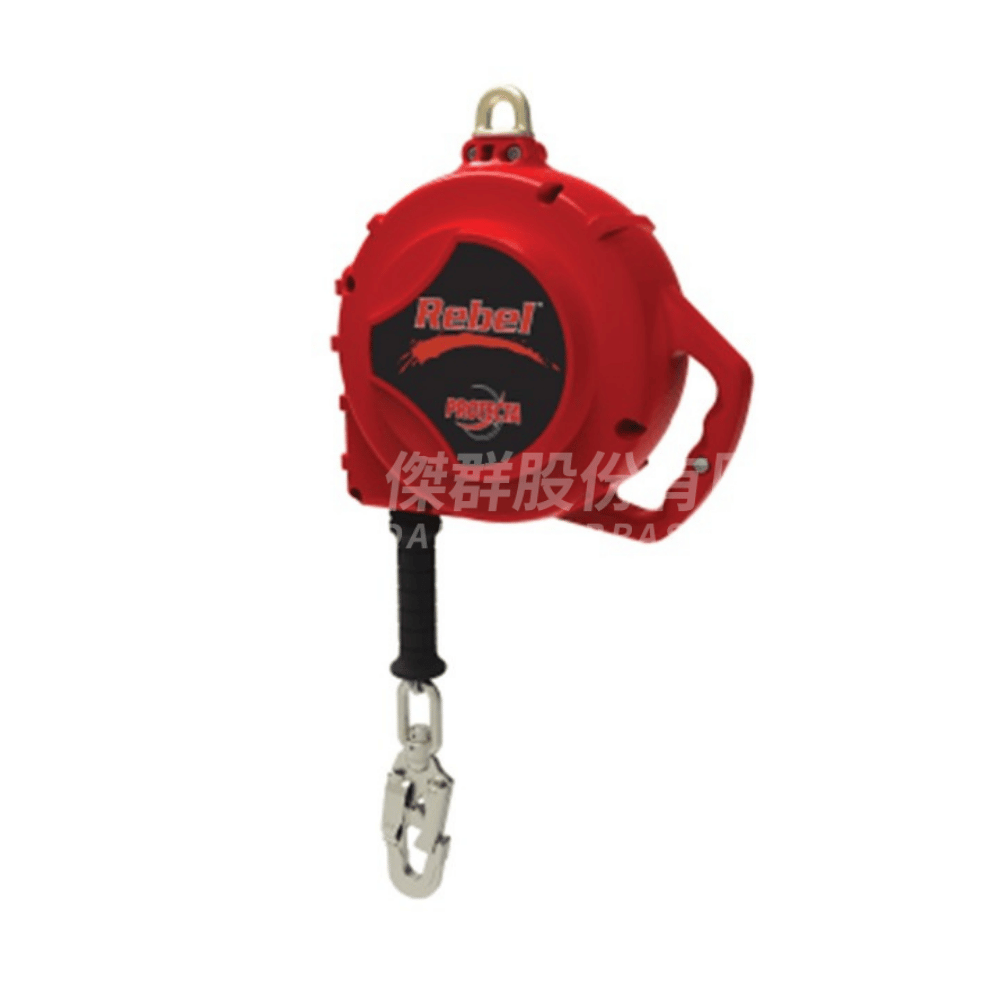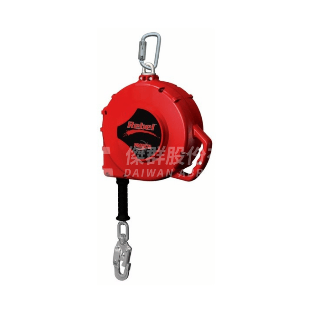 • 速度感應全金屬煞車系統:在墜落時自動運作,降低施加在使用者身上的力